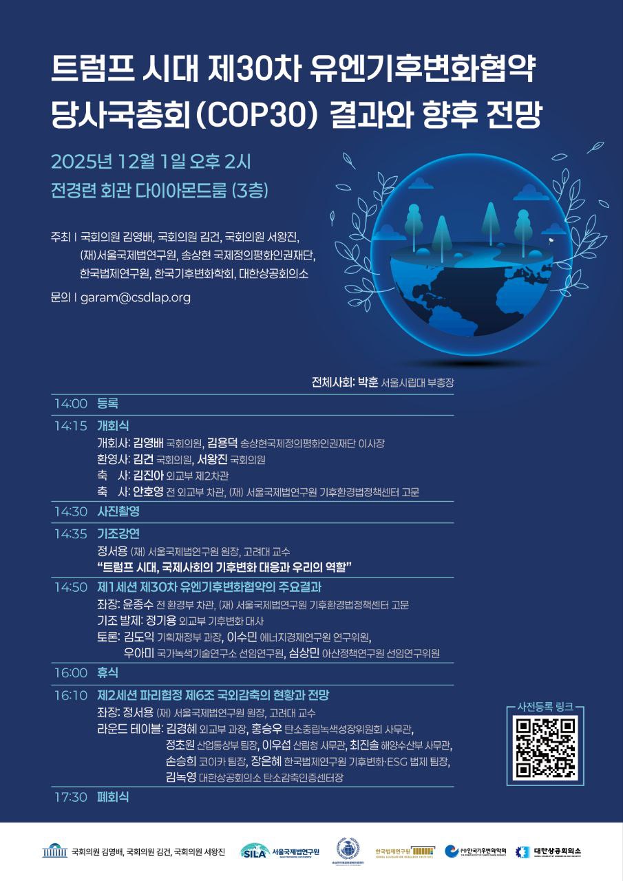 | 제목 | 트럼프 시대 제30차 유엔기후변화협약 당사국총회(COP30) 결과와 향후 전망 | ||