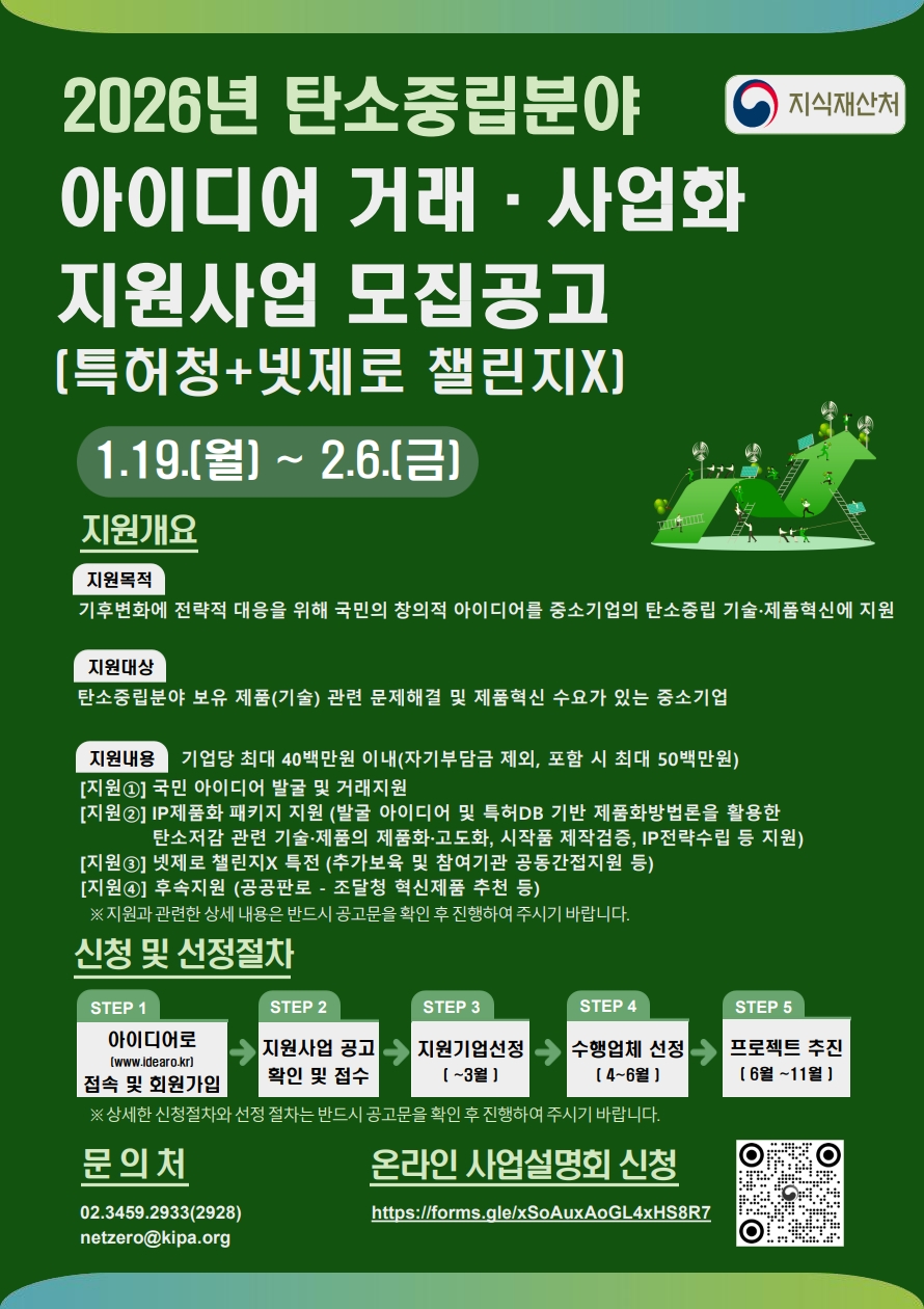 | ‒ | 2026년 탄소중립분야 아이디어 거래사업화 지원사업 |