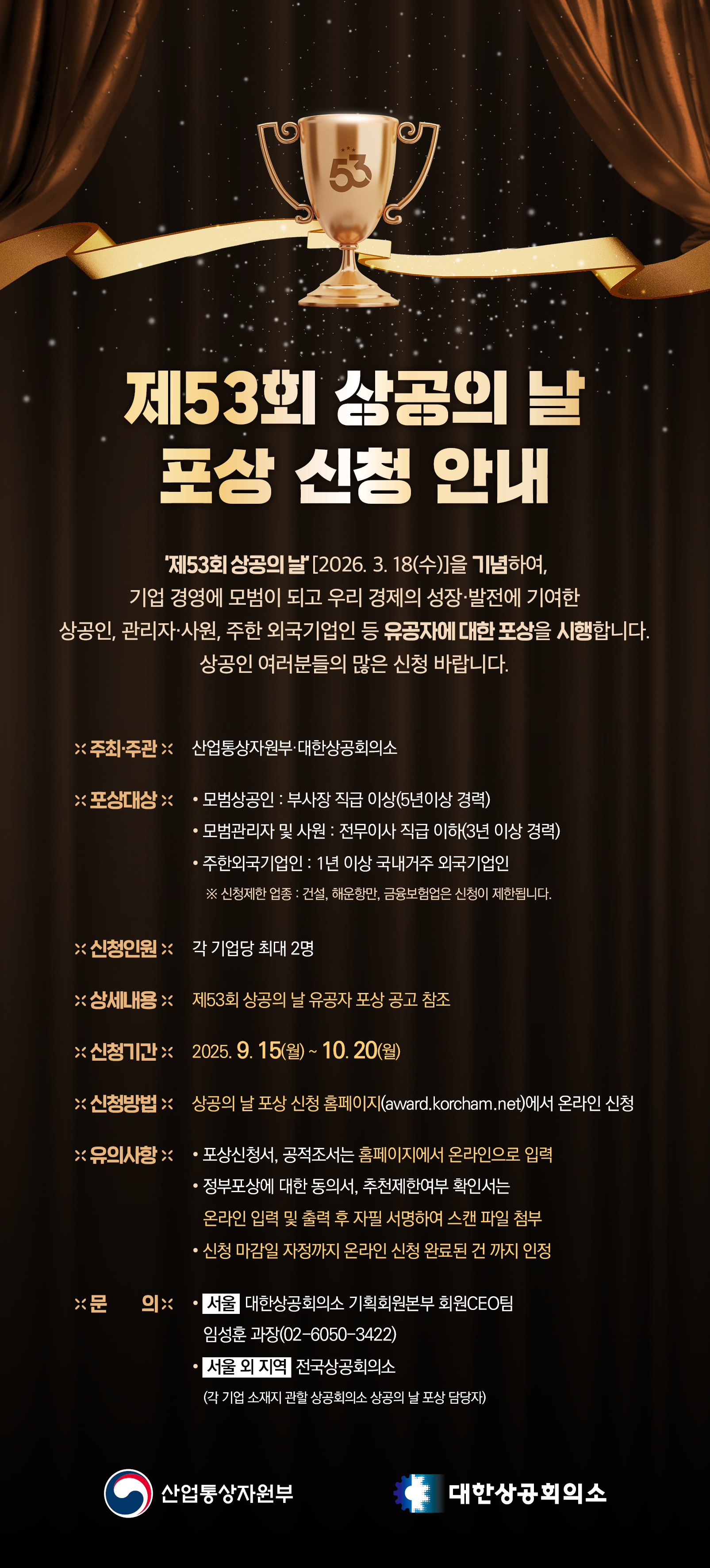 ‒ | 제53회 상공의 날 포상 신청안내 |
